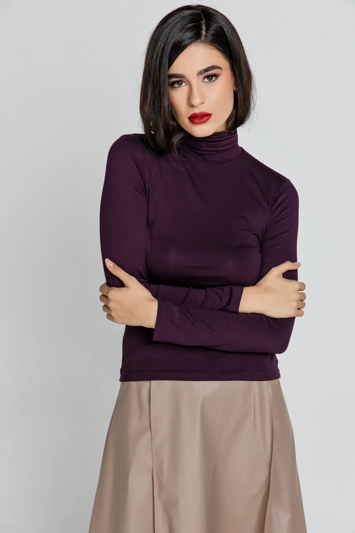 Specificaties: Purper trui met polokraag en lange mouwen
