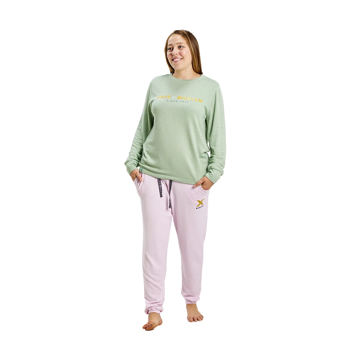 Munchen pyjama met lange mouwen. Kleur roze-groen T-shirt met lange mouwen en ronde hals. Geruite print. Ontwerp met merkafbeeldingen. Lange broek. Elastische tailleband. Rechte zomen. Naden in toon zichtbaar. Samenstelling: 96% Polyester, 4% Elastaan. -Wassen op max. temperatuur. 30º. -Geen bleekmiddel gebruiken. -Strijken op max. temperatuur. 110º. -Niet geschikt voor stomerij. -Mag in de droger. Samenstelling: 96% Polyester, 4% Elastaan. Onderhoud: -Wassen op max. temperatuur. 30º. -Geen bleekmiddel gebruiken. -Strijken op max. temperatuur. 110º. -Niet geschikt voor stomerij. -Je kunt wel een droger gebruiken.