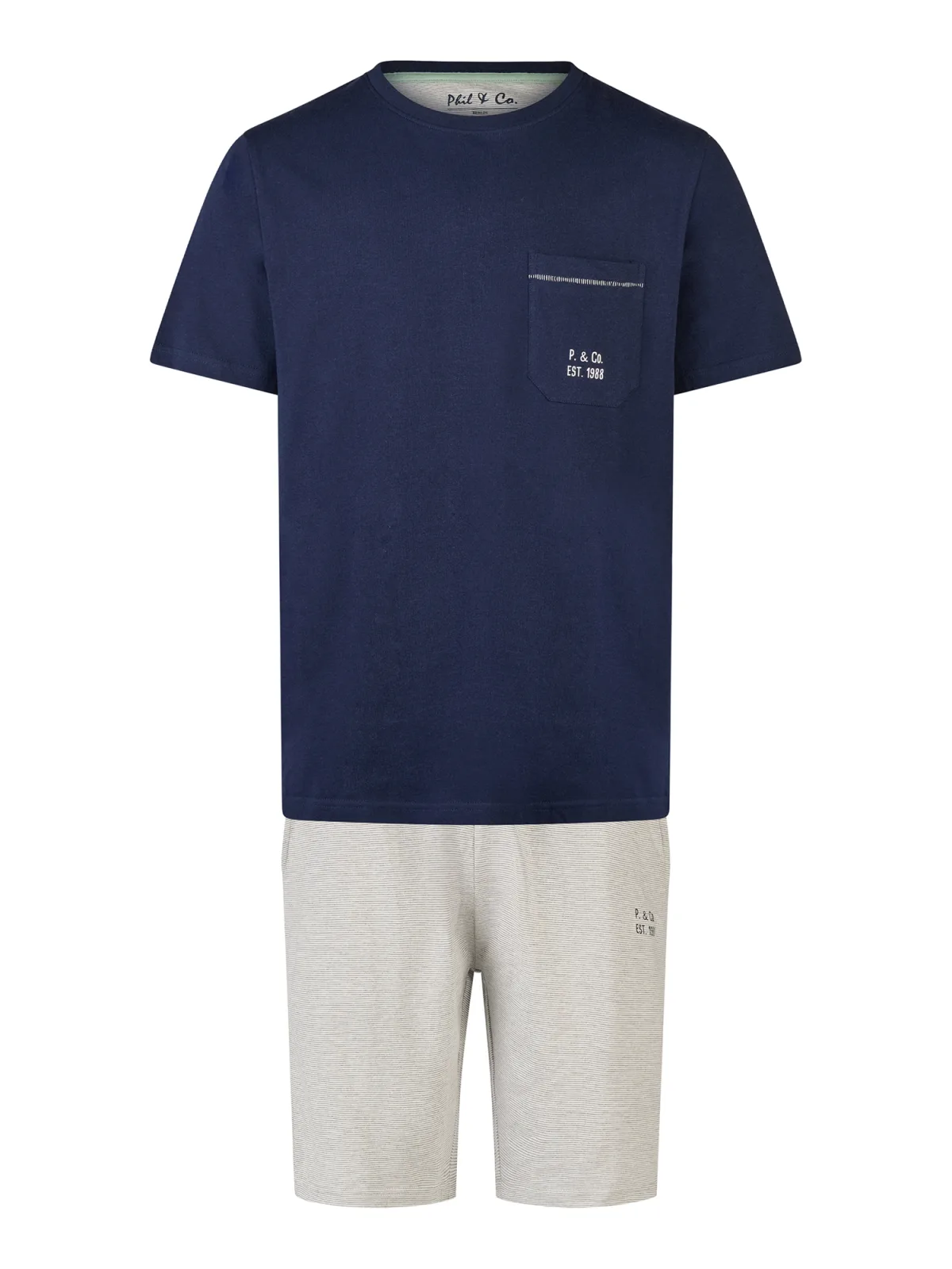 Phil & Co Heren Korte Pyjama Set Shortama Donkerblauw/Grijs Gestreept...