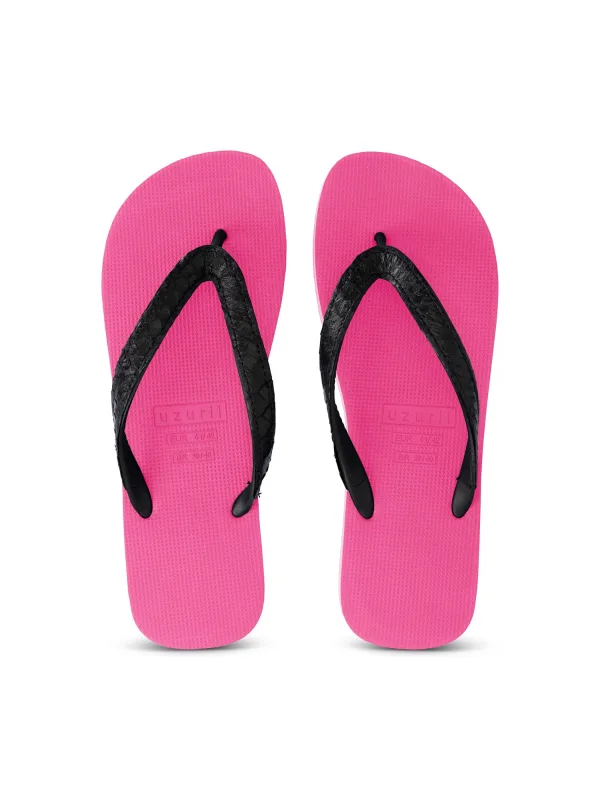 Python zwarte teenslippers neonroze