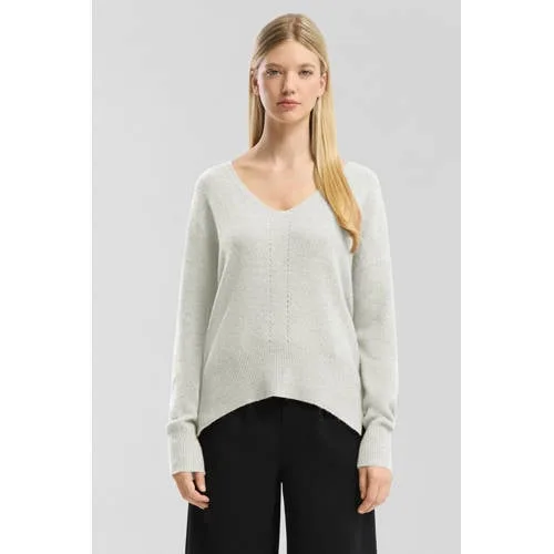 Design: Geribd ceintuurtje, Zijdelingse inkepingen, Overcut schouder; Materiaal: Knitwear; Halstype: V-hals; Motief: Mélange; Details: Mesh; Extra's: Fully fashioned, Met textuur; Pasvorm: Losse pasvorm; Armlengte: Lange mouw; Lengte: Normale lengte