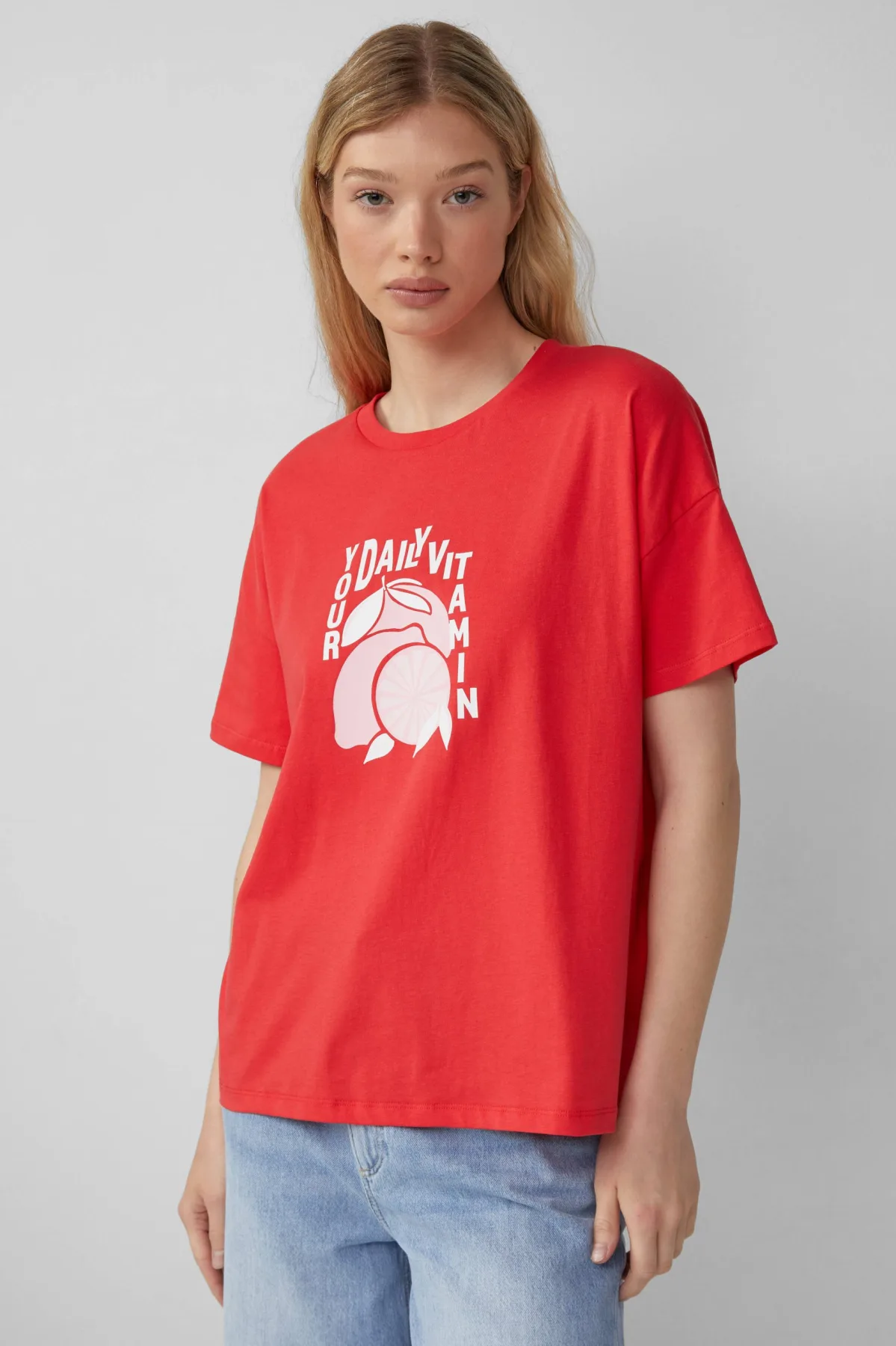 Design: Gevoerde zoom/rand, Oversized; Materiaal: Jersey; Halstype: Ronde hals; Motief: Motiefprint; Extra's: Op staal naden, Voelt zacht aan; Pasvorm: Losse pasvorm; Armlengte: Kwartmouw; Lengte: Normale lengte