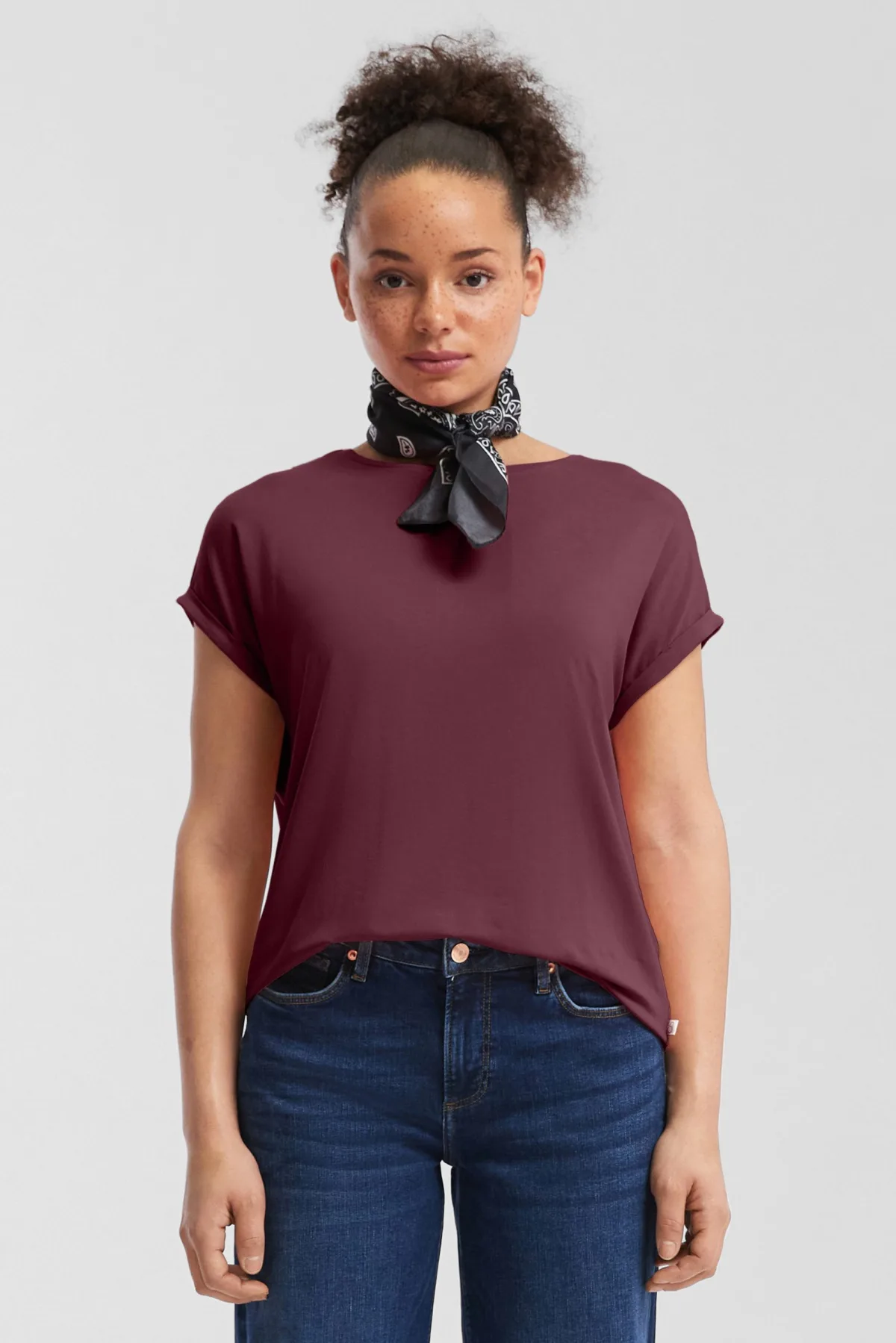 Dit T-Shirt van Q/S by s.Oliver heeft korte vleermuismouwen en een ronde hals. Het is gemaakt van lyocell met een beetje elastaan, wat zorgt voor een zachte stof en een lichte stretch.