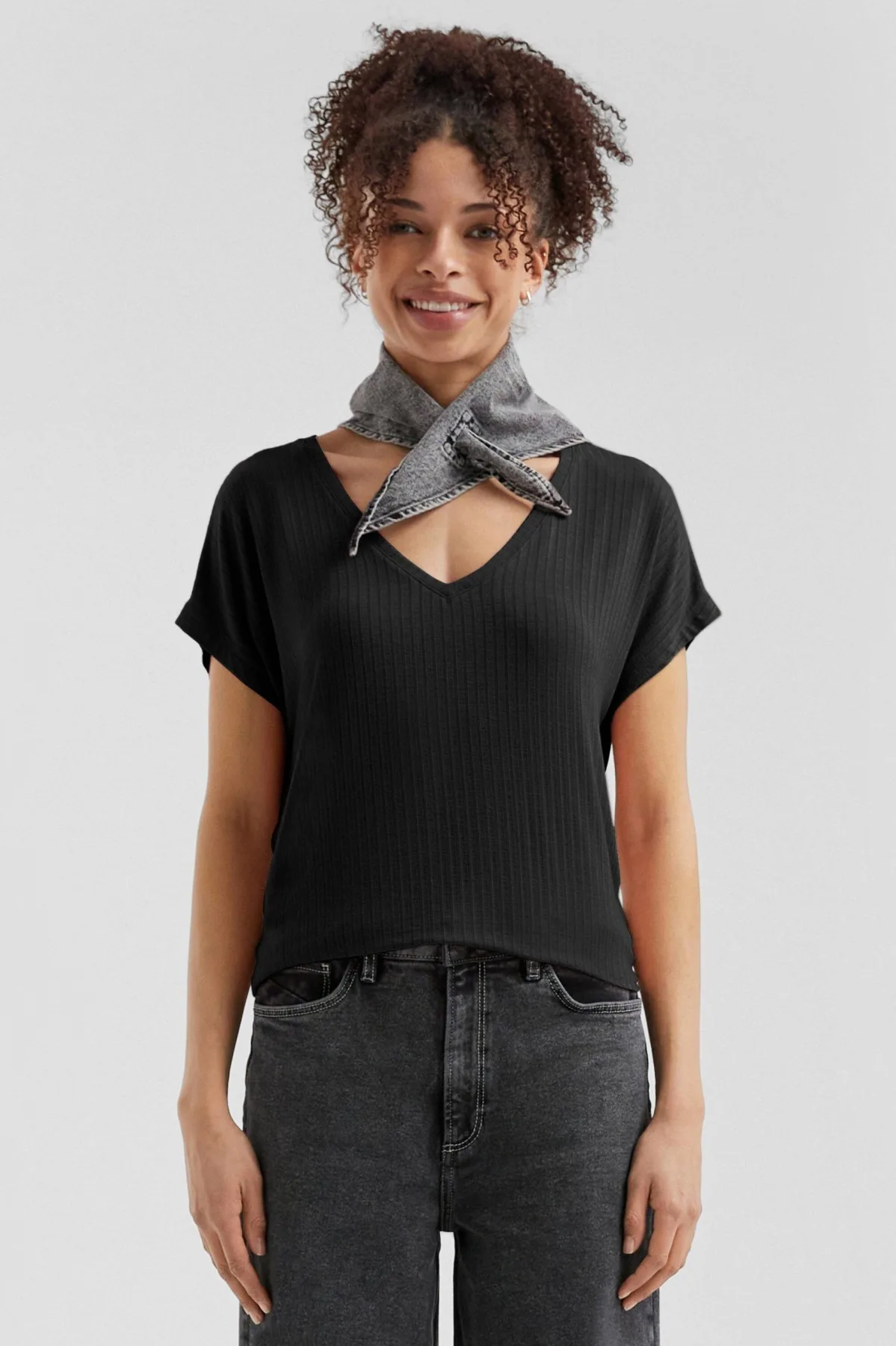 Design: Gevoerde zoom/rand, Recht model; Materiaal: Jersey; Halstype: V-hals; Motief: Effen; Extra's: Op staal naden, Voelt zacht aan; Pasvorm: Normale pasvorm; Armlengte: Kwartmouw; Lengte: Normale lengte