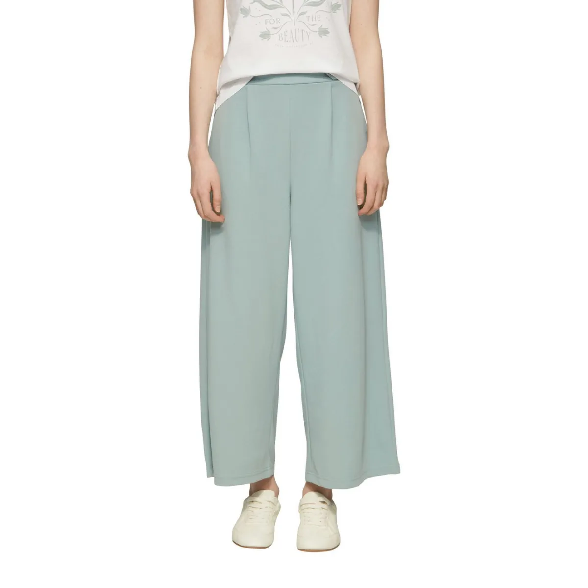 Design: Gevoerde zoom/rand, Elastische taille/zoom, Zakken aan de zijkant; Materiaal: Crêpe; Motief: Effen; Details: Plooien; Extra's: Op staal naden, Gladde stof, Voelt zacht aan; Lengte: 7/8 lengte; Pasvorm: Wide leg; Taillehoogte: High waist