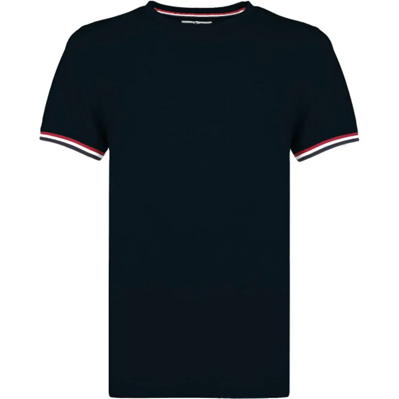 Luchtig en zacht t-shirt met ronde hals. * Shirt met korte mouwen * Ribboord kraag en mouwafwerking- gestreept * 100% katoen * Comfortabele pasvorm * Borduur logo op de borst * Q1905 accenten T-shirt Katwijk is ontworpen met klassieke details en comfortabele pasvorm. De stof bestaat uit een compact gebreide jersey. De gestreepte accenten aan de mouwen geven het shirt een extra uitstraling. Dit is een T-shirt die je het gehele seizoen doordraagt en niet mag ontbreken in je collectie! Beschikbaar in 9 verschillende kleuren. Wasvoorschrift * Was dit product binnenstebuiten * Was met gelijke kleuren * Maximaal op 30℃ * Niet in de droger * Strijk dit product binnenstebuiten op de laagste stand Pasvorm * Ons model is 187 cm lang en draagt maat M