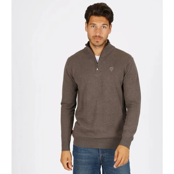 Q1905 Trui kralingen donker taupe melange Prijzen