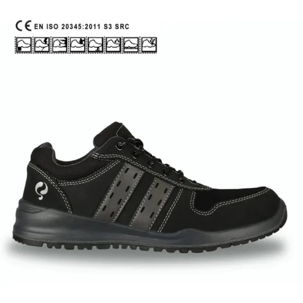 Casual & Trendy Veiligheidsschoen. Upper: suède + leer Binnenvoering: Mesh Binnenzool: Uitneembare anatomische inlegzool Loopzool: PU / PU Model: Laag Normering: S3 / SRC Sector: Bouw, Installatie branche, Logistiek, Magazijn Tussenzool: Flexibele kevlar tussenzool Veiligheidsneus: Stalen neus
