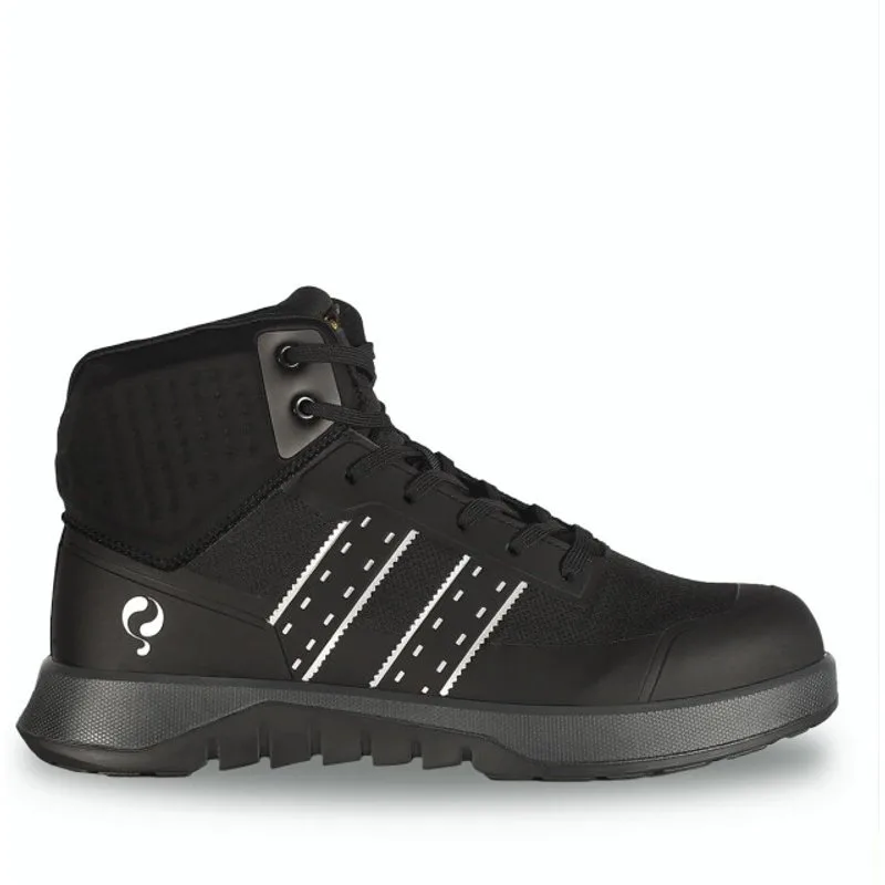 Deze lichtgewicht zwarte hoge werkschoen biedt optimale veiligheid, ademend comfort en moderne stijl. Gemaakt van sterke, flexibele materialen en volledig staalvrij.. Werkschoen Urban Hoog – Veilig, Comfortabel en Duurzaam De Urban Hoog van Q1905 is een moderne, zwarte veiligheidsschoen die voldoet aan alle S3S-, SR- en ESD-normen. Dankzij het lichte bovenwerk van geweven microfiber, Lycra en TPU biedt deze schoen een flexibele pasvorm met ademend comfort. De 3D-mesh binnenvoering houdt je voeten fris, terwijl de uitneembare inlegzool antistatisch is en vocht absorbeert. De PU/rubber loopzool zorgt voor uitstekende grip en schokdemping bij de hiel. Met een composiet veiligheidsneus en kevlar tussenzool ben je volledig beschermd zonder staal. * Normering: S3S – SR – ESD – Staalvrij - 60 waterafstotend * Upper: Zwart geweven Microfiber - Flying knitted gecombineerd met Lycra (fijne, rekbare stof) en TPU. Een sterke vezels wat zorgt voor een licht bovenwerk en stretch. *