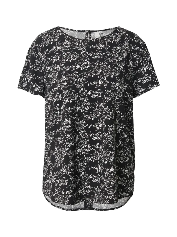 Blouse type: Blouseshirt; Design: Gevoerde zoom/rand, Keyholesluiting, Verlengd rugpand; Type sluiting: Knoopsluiting; Materiaal: Viscose; Motief: Bloemenprint; Kraag: Zonder kraag; Details: Cut-outs; Extra's: All-over patroon, Gladde stof; Pasvorm: Losse pasvorm; Armlengte: Kwartmouw; Lengte: Normale lengte