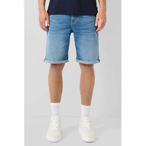 Ga voor een relaxte zomerlook met deze light blue denim short voor heren. De korte broek heeft een regular fit met mid rise taille, waardoor hij mooi recht langs het been valt. De lichte wassing geeft de denim een frisse, casual uitstraling.Praktische details voor elke dag Gemaakt van 99% katoen en 1% elastaan voor een stevige jeanslook met een beetje stretch Regular fit en mid rise taille voor een tijdloze pasvorm Klassiek 5-pocket-model voor voldoende opbergruimte Rits- en knoopsluiting en riemlussen in de band voor het dragen van je favoriete riem Rolzoom aan de pijpen voor een ontspannen, zomerse uitstraling Light blue denim in effen kleur, eenvoudig te combineren met veel outfitsCasual korte broek voor dagelijks gebruikDeze denim Bermuda komt uit de 'Daily' collectie en is geschikt voor alledaagse momenten. De korte beenlengte en het soepele materiaal zorgen ervoor dat je je makkelijk kunt bewegen, of je nu door de stad loopt of in de tuin zit.QS: moderne stijl voor elke dagQS staat voor toegankelijke mode met een moderne, casual uitstraling. De focus ligt op draagbare basics en actuele items die je gemakkelijk met elkaar combineert.Een praktische denim short waarmee je eenvoudig een ontspannen, zomerse look creëert.
