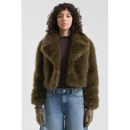 QS faux fur jas donkerbruin