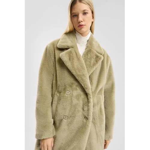 QS faux fur jas lichtkaki