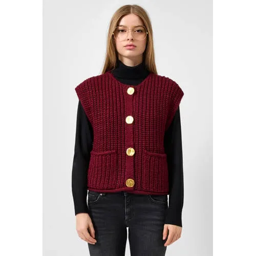 QS gebreid vest donkerrood