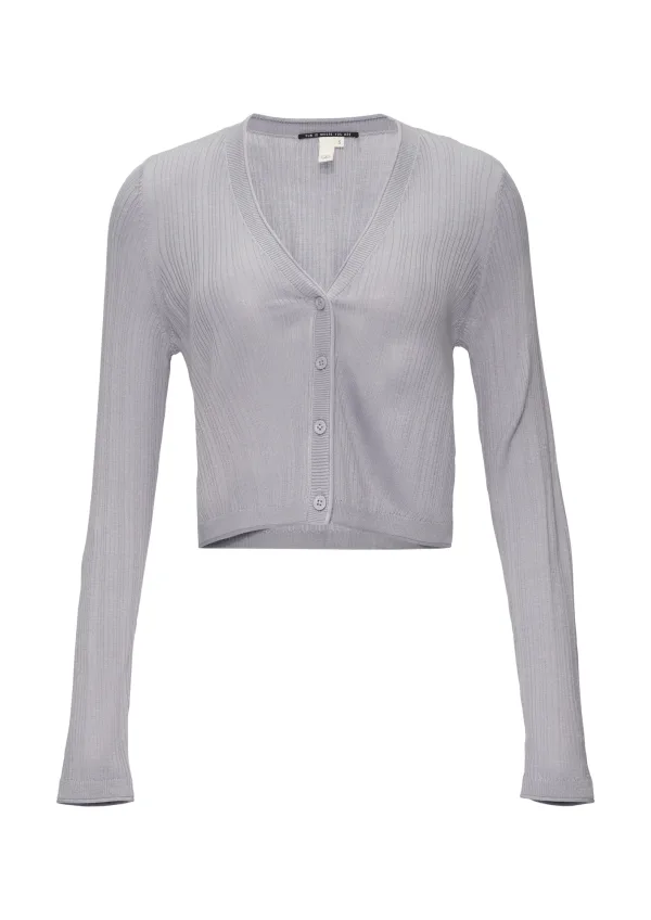Design: Geribbelde kraag; Type sluiting: Knoopsluiting; Materiaal: Knitwear; Halstype: V-hals; Motief: Effen; Extra's: Met textuur; Pasvorm: Slanke pasvorm; Armlengte: Lange mouw; Lengte: Korte pasvorm