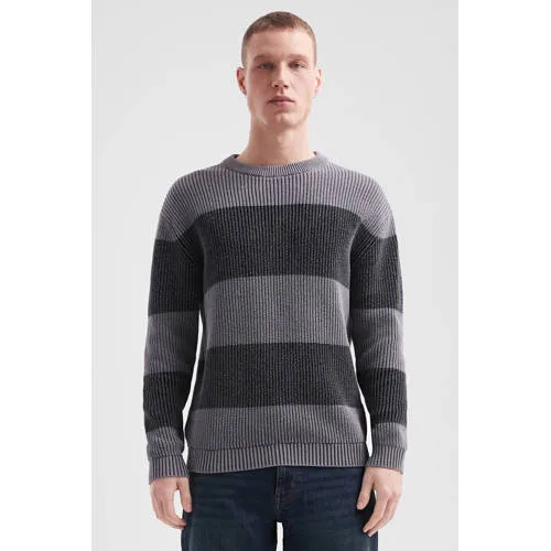 QS gestreepte gebreide trui antraciet