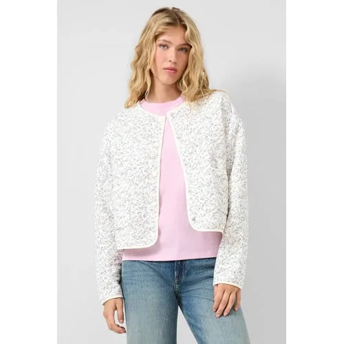 Deze korte, doorgestikte jas van QS is een praktische basic voor elke dag. De licht gewatteerde stof met all-over bloemenprint geeft je outfit direct meer karakter, terwijl de relaxed fit zorgt voor een rustig en comfortabel silhouet. Als moderne quilted jas voor dames van QS is dit een geschikt laagje voor frisse lentedagen of koele zomeravonden.Korte quilted jas met bloemenprint Korte lengte die mooi valt op een hoge jeans, rok of jurk All-over bloemenprint op ecru voor een zachte, frisse uitstraling Doorgestikte, quilted afwerking voor subtiel volume en vorm Relaxed fit met oversized schouders voor een casual look Lange, rechte mouwen die veel bewegingsvrijheid geven Mao kraag voor een moderne, rustige halslijn Zakken om je handen in weg te steken of kleine spullen bij je te dragen Zachte, soepele stof met viscose die prettig aanvoelt op de huidIdeaal voor dagelijkse lagenDeze jas past goed bij je dagelijkse garderobe. Draag hem over een T-shirt en een rechtvallende jeans voor een ontspannen look, of over een eenvoudige jurk om wat extra warmte en structuur toe te voegen. De lichte wattering maakt het een praktische tussenjas voor het voorjaar.QS: eigentijdse stijl voor elke dagQS staat voor toegankelijke mode met een moderne uitstraling. De collecties zijn gericht op comfortabele items die je makkelijk combineert en graag uit de kast pakt. Met deze jas kies je voor een betrouwbaar item dat past bij een druk leven waarin je er toch verzorgd uit wilt zien.Een lichte jas die je zonder moeite toevoegt aan je dagelijkse outfits.