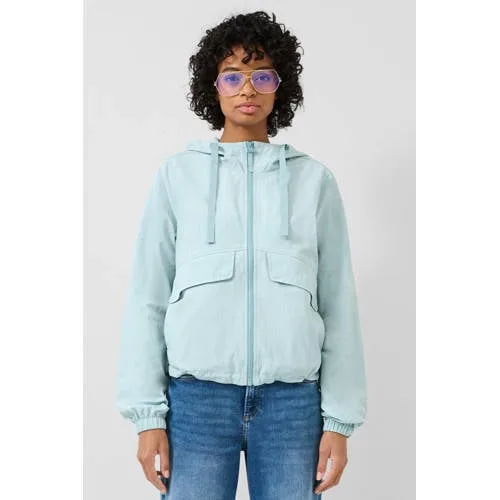 Ga zorgeloos naar buiten met deze sportieve turquoise outdoor jas voor dames van QS. De korte lengte en het lichte, geweven materiaal geven een luchtig gevoel, ideaal voor lentedagen en frisse zomeravonden. De vaste capuchon met tunnelkoord zorgt voor extra bescherming als het wat harder waait en de gekreukte look geeft de jas een casual uitstraling die past bij alledaagse momenten.Licht, praktisch en sportief Korte outdoor jas in effen turquoise voor een frisse, moderne uitstraling Vaste capuchon met tunnelkoord zodat je de capuchon naar wens kunt aansnoeren Regular fit, comfortabel over een T-shirt, lichte trui of hoodie te dragen Lange mouwen met elastische boorden die mooi aansluiten rond je polsen Elastische zoom voor een aangesloten silhouet dat de wind beter buiten houdt Voorzien van ritssluiting over de hele lengte voor snel aan- en uittrekken Praktische klepzak en in de naad weggewerkte zakken om kleine essentials bij je te dragen Gevoerde binnenkant met gladde voering voor een soepele, aangename touchPerfect voor elke dag buitenDeze jas uit de 'Daily' collectie is ideaal voor dagelijks gebruik, zoals een wandeling met de kinderen, boodschappen doen of een snelle trip door de stad. De niet al te warme voering maakt de jas geschikt als tussenjas in de lente en op mildere dagen in de zomer.QS, eigentijdse stijl voor elke dagQS staat voor moderne, toegankelijke mode met een sportieve twist. De collecties zijn ontworpen voor dagelijks draagplezier, met aandacht voor pasvorm en praktische details. Met deze jas kies je voor een betrouwbaar kledingstuk dat makkelijk combineert met je favoriete casual outfits.Een lichte, praktische buitenjas die je zo meeneemt zodra je de deur uit gaat.