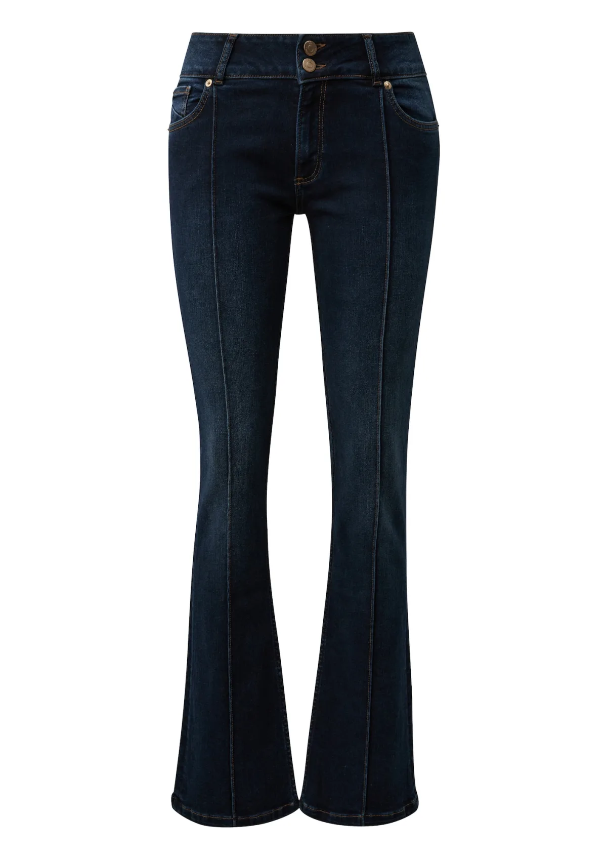 Design: 5-pocket-style; Type sluiting: Ritssluiting; Materiaal: Denim; Motief: Effen; Extra's: Riemlussen; Wassing: Rinsed/dark washed; Lengte: Lang/maxi; Pasvorm: Flared; Taillehoogte: Mid waist