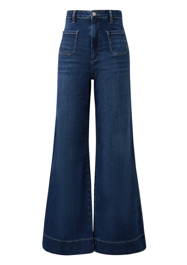Zoek je een broek die soepel met je meebeweegt en je benen optisch langer laat lijken, dan is deze donkerblauwe flared jeans voor dames een basic voor alledag. De high rise taille sluit mooi aan in de taille, terwijl het slim fit bovenbeen en de uitlopende pijpen samen zorgen voor een vrouwelijk silhouet. Door de donkerblauwe denimkleur past deze jeans makkelijk bij je favoriete tops, truien en blazers.Comfortabele pasvorm met stretch High rise taille met riemlussen voor een prettig aansluitende band Slim fit bovenbenen met flared leg voor een langer en slanker effect Gemaakt van een katoenmengsel met 90% Katoen, 008% LycRamee T400 en 002% Elastine voor superstretch Rits- en knoopsluiting aan de voorkant Voorzien van opgestikte achterzakken en zakken voor Donkerblauwe denimkleur die makkelijk te combineren is Lange, regular beenlengte passend bij de Daily collectieElke dag casual te combinerenVoor een ontspannen look combineer je de jeans met een T-shirt en sneakers. Wil je een meer geklede stijl, dan past een blouse of fijngebreide trui met enkellaarsjes er goed bij. De superstretch stof beweegt prettig mee tijdens je dag, of je nu aan het werk bent, in de stad loopt of thuis ontspant.QS denim voor dagelijks dragenQS richt zich op moderne, draagbare kleding voor elke dag. De focus ligt op toegankelijke styles in vertrouwde pasvormen, zodat je makkelijk een outfit samenstelt die bij je past. Met deze flared jeans haal je een betrouwbare basis in huis die seizoen na seizoen meegaat.Een comfortabele denim basic voor elke dag.