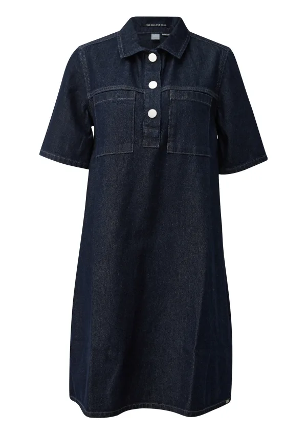 Design: Gevoerde zoom/rand, Rechte zoom; Type sluiting: Knoopsluiting; Materiaal: Denim; Halstype: Polokraag; Motief: Effen; Extra's: Op staal naden, Voelt zacht aan; Lengte: Kort/mini; Snit: Recht; Pasvorm: Normale pasvorm; Armlengte: Halve mouw