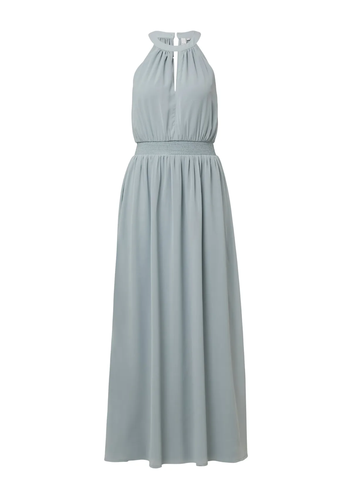 Design: Elastische taille/zoom; Type sluiting: Knoopsluiting; Materiaal: Chiffon; Halstype: Ronde hals; Motief: Effen; Soort bandjes: Haltermodel; Details: Cut-outs, Gedrapeerd; Extra’s: Lichte stof; Lengte: Lang/maxi; Snit: Getailleerd; Pasvorm: Normale pasvorm; Armlengte: Mouwloos
