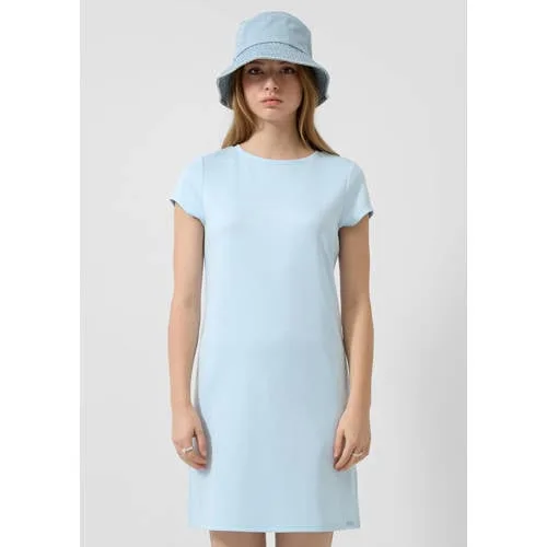 Met deze lichtblauwe korte jurk met ronde hals van QS heb je een frisse basis voor elke dag. De effen kleur oogt rustig en zacht, terwijl de interlock-jersey soepel om je lichaam valt. De jurk heeft een regular fit, waardoor hij niet te strak en niet te wijd zit, fijn voor werk, een dagje stad of een casual etentje.Details die het verschil maken Lichtblauwe kleur voor een frisse, zomerse uitstraling Interlock-jersey met stretch voor een zachte touch en extra bewegingsvrijheid Regular fit die comfortabel valt rond het lichaam Ronde hals en korte rechte mouwen voor een tijdloze look Korte lengte, ideaal voor warme dagen of met een panty op koelere momenten Zonder sluiting, je trekt de jurk eenvoudig over je hoofd aan Geschikt voor dagelijkse looks binnen de 'Daily' collectieCasual combineren op jouw manierDeze jurk past gemakkelijk in je dagelijkse garderobe. Draag hem met sneakers voor een relaxte draai of met sandalen voor een meer vrouwelijke uitstraling. Door de effen stof kun je eenvoudig variëren met sieraden, een riem of een lichte zomerjas.QS: eigentijdse stijl voor elke dagQS focust op moderne, draagbare mode voor elke dag. De collecties sluiten aan op een actieve levensstijl en bieden kleding die prettig zit en makkelijk te combineren is. Zo voeg je zonder moeite nieuwe favorieten toe aan je kast.Een lichte en comfortabele keuze waar je in één keer klaar mee bent als je iets eenvoudigs en verzorgd wilt dragen.