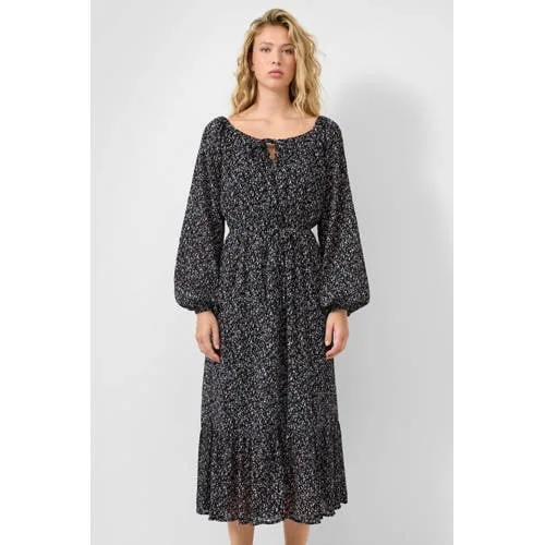 QS midi jurk met bloemenprint zwart
