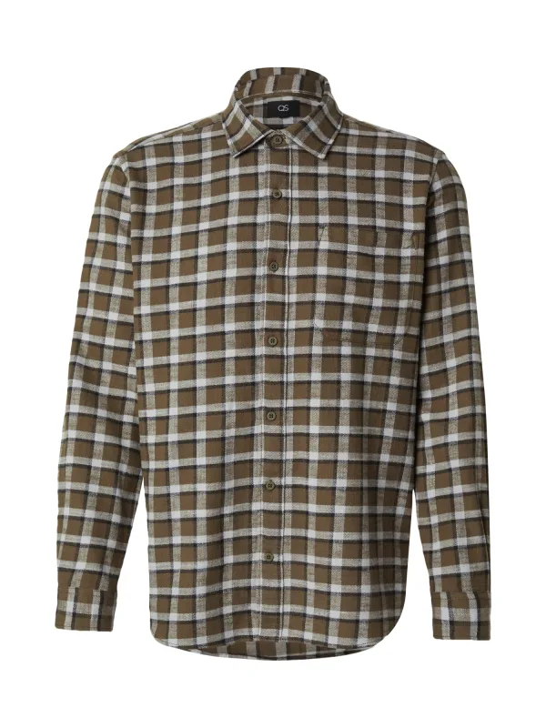 QS Overhemd lichtgrijs / olijfgroen / zwart