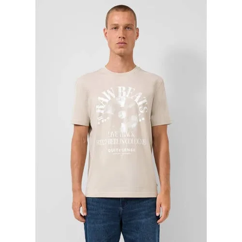 Met dit QS T-shirt heren voeg je eenvoudig een frisse basic toe aan je kast die net wat extra heeft. Het T-shirt heeft een ronde hals en korte mouwen, en valt in een regular fit. De jersey stof van 100 procent katoen voelt zacht aan op de huid en is prettig voor elke dag. De print op de voorkant geeft het shirt een eigentijdse uitstraling zonder te druk te zijn.Belangrijke kenmerken op een rij Regular fit voor een comfortabele, rechtvallende pasvorm Korte mouwen, ideaal voor warme dagen of onder een vest Ronde hals voor een tijdloze, casual look Gemaakt van 100 procent katoen voor een zachte touch Jersey kwaliteit die soepel valt en prettig meebeweegt Artwork met print op de voorkant als rustig, stijlvol detailEenvoudig te combineren in jouw dagelijks levenDit T-shirt draag je makkelijk op een jeans, chino of korte broek. Onder een overshirt of hoodie blijft de print subtiel zichtbaar, terwijl de katoenen jersey ervoor zorgt dat het prettig aanvoelt, ook als je in beweging bent of een drukke dag hebt.QS, moderne basics met een eigentijdse twistQS staat voor toegankelijke mode met een moderne uitstraling. De collecties draaien om draagbare items die goed aanvoelen en makkelijk te combineren zijn. Zo bouw je zonder moeite een garderobe op waar je elke dag op kunt vertrouwen.Een ontspannen T-shirt dat je moeiteloos meeneemt in al je dagelijkse outfits.