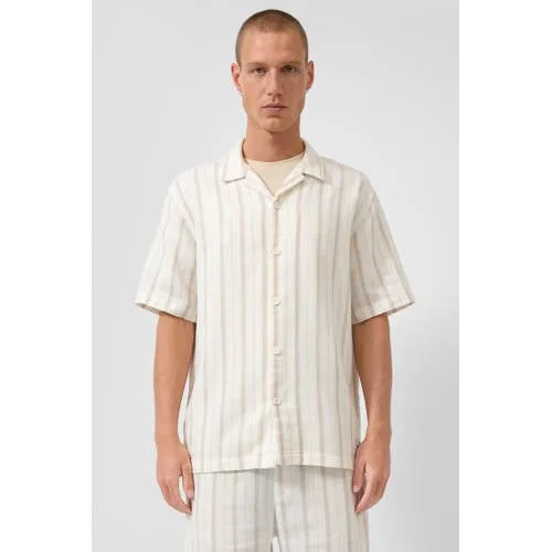 QS relaxed gestreepte gestreept casual overhemd beige Prijzen