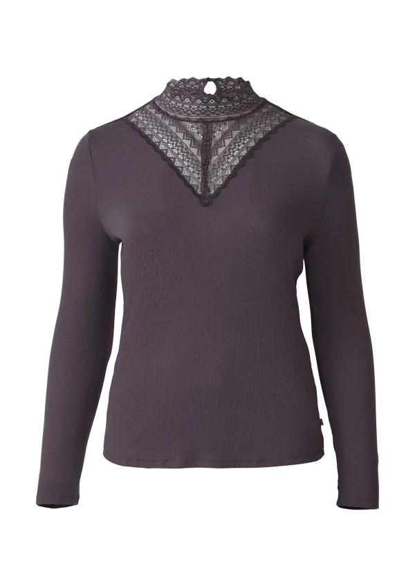 Blouse type: Blouseshirt; Design: Gevoerde zoom/rand, Keyholesluiting; Type sluiting: Knoopsluiting; Materiaal: Jersey; Halstype: Opstaande kraag; Motief: Effen; Kraag: Opstaande kraag; Details: Cut-outs, Kant; Extra's: Op staal naden, Voelt zacht aan; Pasvorm: Slanke pasvorm; Armlengte: Lange mouw; Lengte: Normale lengte