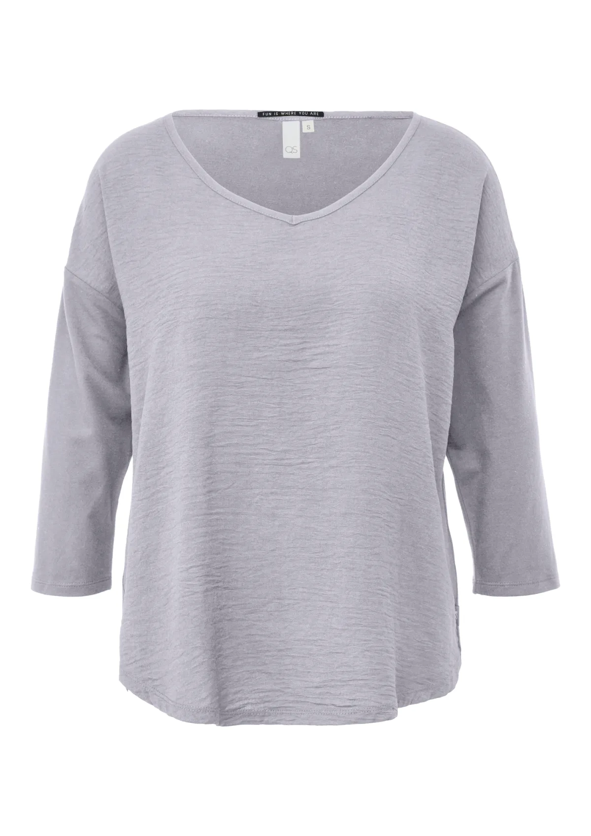 Design: Gevoerde zoom/rand, Overcut schouder; Materiaal: Jersey; Halstype: V-hals; Motief: Effen; Extra's: Op staal naden, Voelt zacht aan; Pasvorm: Losse pasvorm; Armlengte: Driekwart mouw; Lengte: Normale lengte