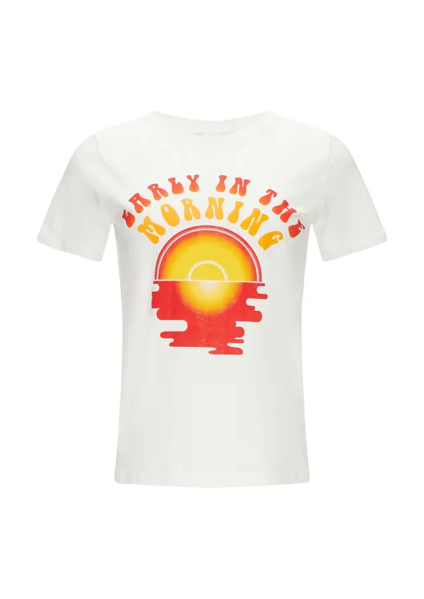 Design: Geribbelde kraag; Materiaal: Jersey; Halstype: Ronde hals; Motief: Motiefprint; Extra's: Voelt zacht aan; Pasvorm: Normale pasvorm; Armlengte: Kwartmouw; Lengte: Normale lengte