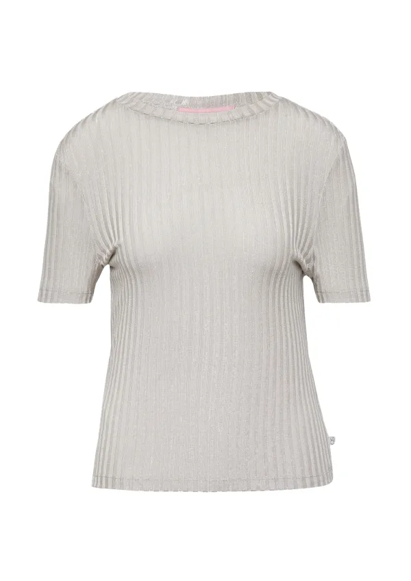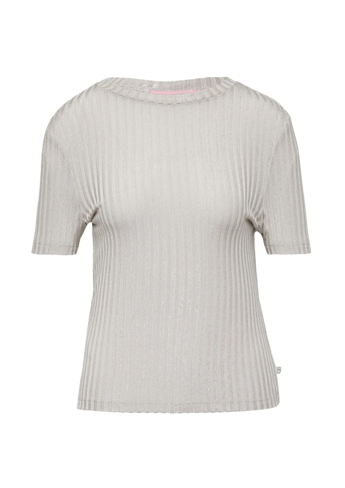 Design: Gevoerde zoom/rand, Geribbelde kraag, Geribbeld gebreid; Materiaal: Jersey; Halstype: Ronde hals; Motief: Effen; Extra's: Glinsterend, Label patch/label flag, Voelt zacht aan; Pasvorm: Slanke pasvorm; Armlengte: Kwartmouw; Lengte: Normale lengte
