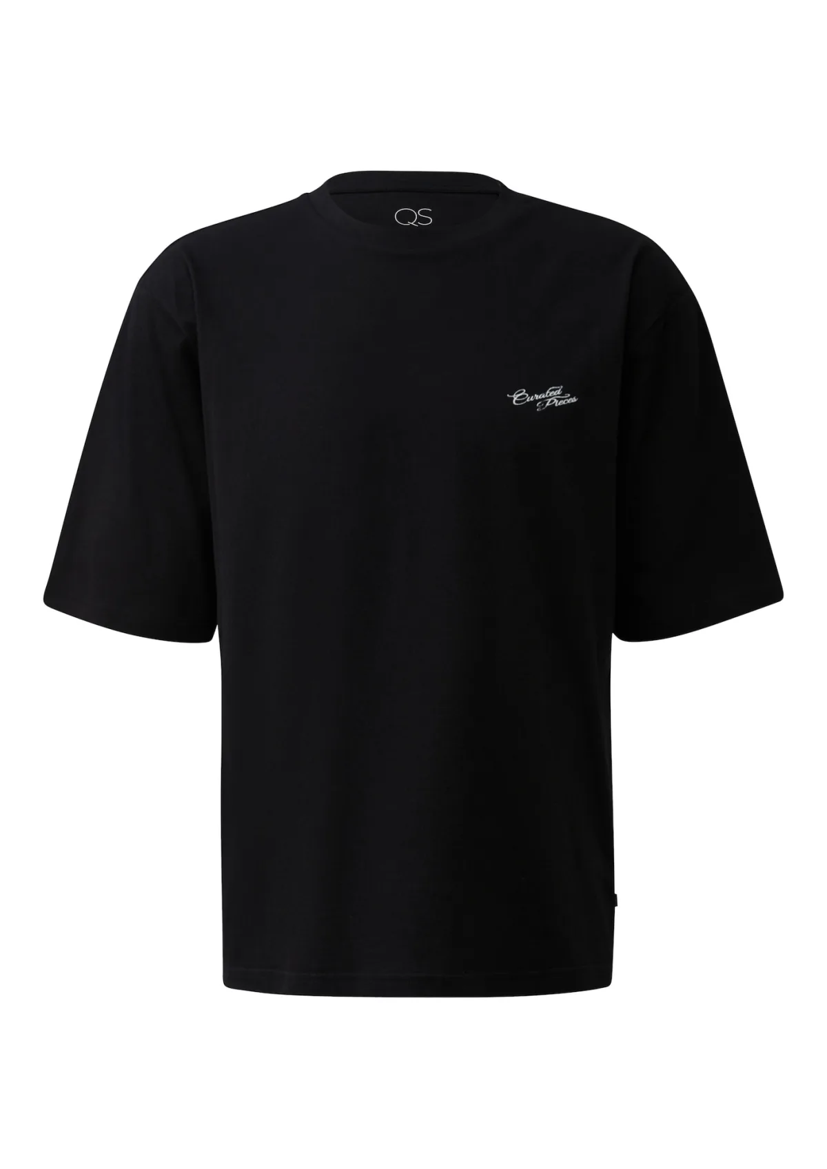 Voor een relaxte look met een grafische twist is dit zwarte loose fit heren T-shirt van katoen van s.Oliver een praktische basis in je garderobe. Het T-shirt heeft een comfortabele, wijdere pasvorm en is gemaakt van zachte jersey van 100% katoen. De ronde hals met geribde rand en de korte mouwen geven het shirt een tijdloze uitstraling, terwijl de opvallende print op zowel de voorkant als de achterkant zorgt voor een moderne, dagelijkse stijl.Dagelijks comfort met grafische details Loose fit pasvorm voor een ontspannen, luchtig gevoel Gemaakt van 100% katoen, zacht en prettig om direct op de huid te dragen Zachte jersey stof die soepel meebeweegt Artwork met print op de voorkant en backprint voor een eigentijdse look Ronde hals met geribde rand die mooi in vorm blijft Korte mouwen, ideaal voor het voorjaar en de warmere dagen Zwarte kleur die makkelijk te combineren is met jeans, jogpants of shortsCasual outfit voor elke dagDit T-shirt past goed in je dagelijkse garderobe. Combineer het met een lichte jeans en sneakers voor een casual dag, of draag het met een donkere broek en een open overshirt voor een iets aangeklede vrijetijdslook.s.Oliver als vertrouwd kledingmerks.Oliver staat bekend om toegankelijke mode voor alledag, met een focus op draagbaarheid en betrouwbare kwaliteit. De collecties sluiten aan op het leven van alledag, met kledingstukken die makkelijk te combineren zijn en lang mooi blijven.Een veelzijdig T-shirt voor een ontspannen, moderne look.