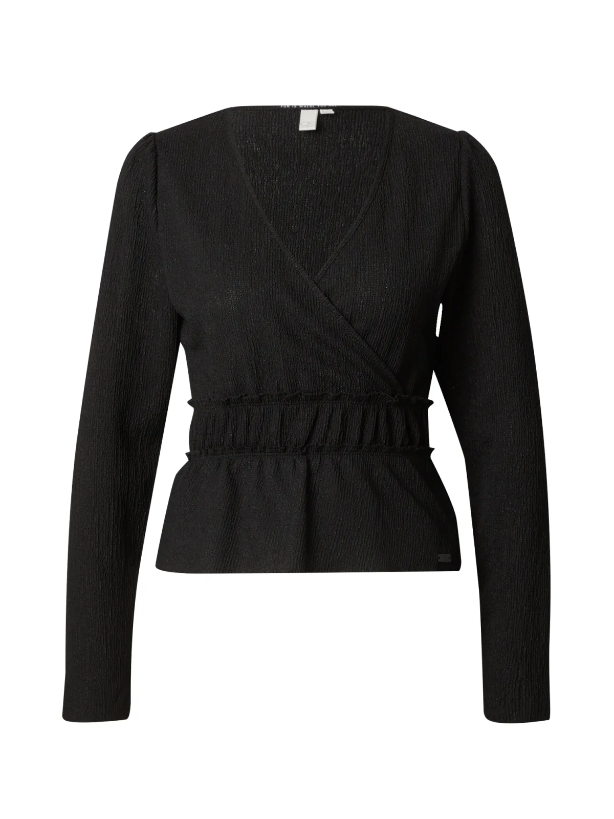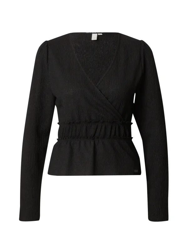 Blouse type: Blouseshirt; Design: Gevoerde zoom/rand, Diepe snit/decolleté; Halstype: V-hals; Motief: Effen; Kraag: Zonder kraag; Details: Ruches, Gedrapeerd, Wikkel design; Extra's: Op staal naden, Met textuur; Pasvorm: Normale pasvorm; Armlengte: Lange mouw; Lengte: Normale lengte