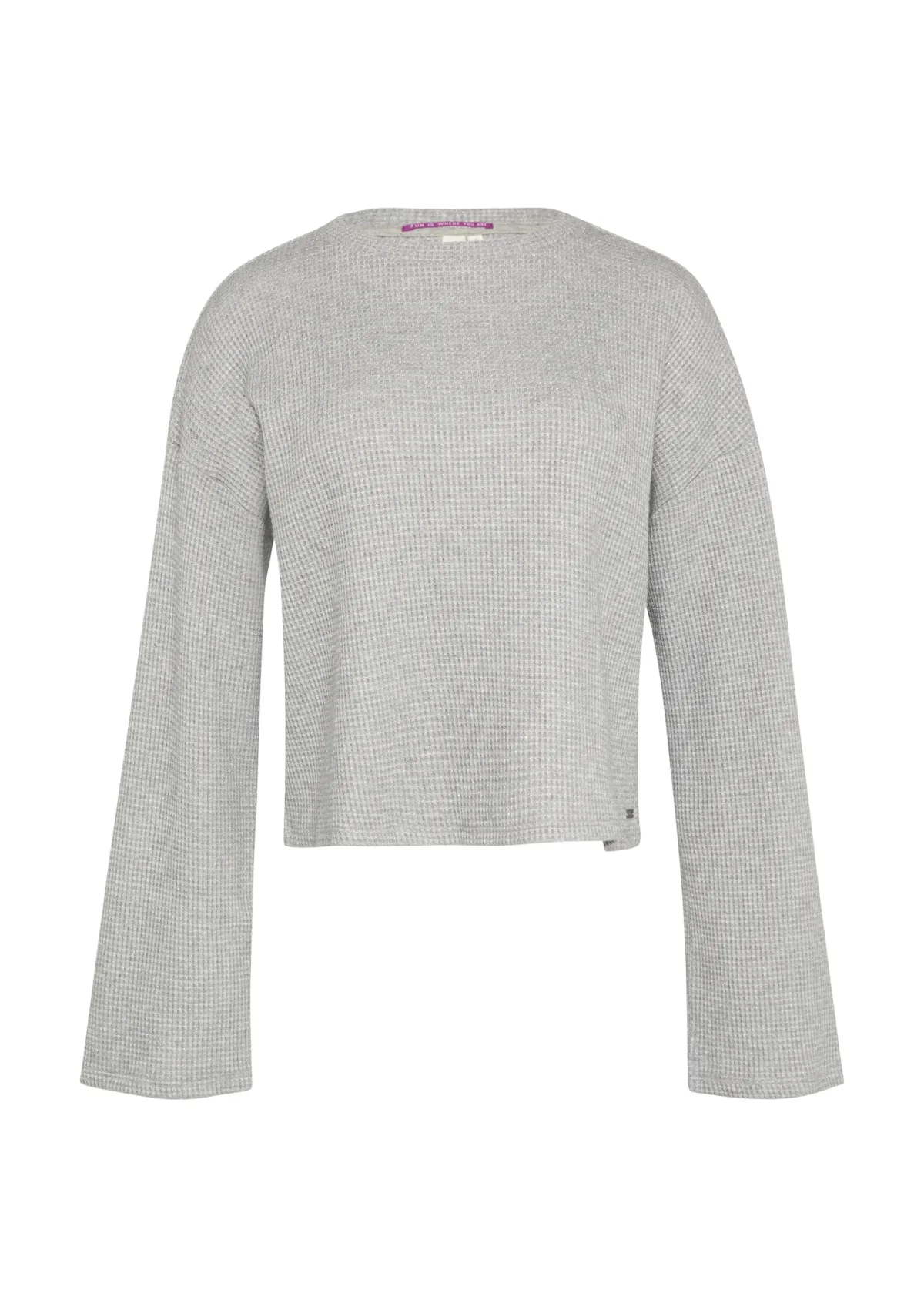 Design: Overcut schouder; Materiaal: Sweatstof; Halstype: Ronde hals; Motief: Mélange; Extra's: Glitterend; Pasvorm: Losse pasvorm; Armlengte: Lange mouw; Lengte: Normale lengte