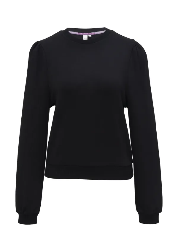 Design: Geribbelde kraag, Pofmouwen, Geribd ceintuurtje; Materiaal: Sweatstof; Halstype: Ronde hals; Motief: Effen; Details: Gedrapeerd; Extra's: Op staal naden; Pasvorm: Normale pasvorm; Armlengte: Lange mouw; Lengte: Normale lengte