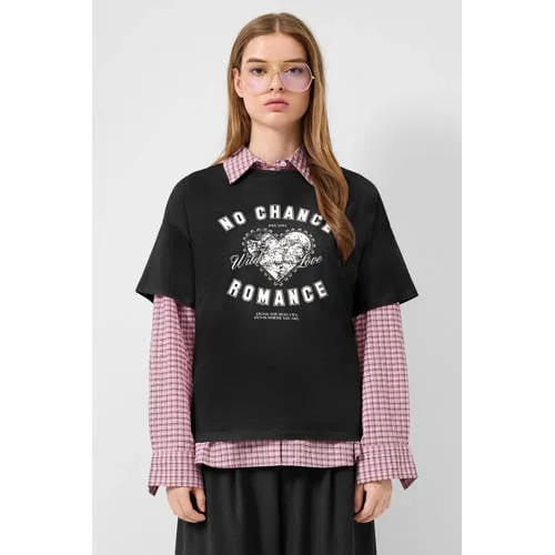 Ga voor een relaxte, moderne look met dit QS T-shirt dames. Het shirt heeft een losvallende pasvorm en voelt zacht aan op de huid. Ideaal voor dagen waarop je iets luchtigs en comfortabels wilt dragen, zonder in te leveren op stijl. De tekstprint op de voorkant geeft het T-shirt een stoere, casual uitstraling die makkelijk te combineren is.Luchtig shirt met losse pasvorm Gemaakt van 100% katoen voor een zachte, soepele feel Jersey stof die prettig meebeweegt en licht elastisch aanvoelt Loose fit pasvorm voor een relaxed silhouet Oversized schouders en rechte korte mouwen voor een nonchalante look Ronde hals die mooi aansluit zonder strak te zitten Tekstprint op de voorkant als stijlvol detail Geen zakken voor een rustige, cleane uitstralingMakkelijk te combineren basicDoor de losse pasvorm en de korte mouwen is dit T-shirt geschikt voor verschillend gebruik, van thuiswerken tot een dagje stad. Het shirt valt soepel om het lichaam en laat zich eenvoudig combineren met een jeans, short of een wijde broek. De ronde hals en het rechte mouwdesign zorgen voor een tijdloze basis in je garderobe.QS, eigentijds en toegankelijkQS staat voor casual mode met een moderne uitstraling. De items zijn ontworpen om elke dag te dragen en sluiten aan op een druk, veelzijdig leven. Met dit T-shirt kies je voor een betrouwbaar basisstuk dat stijl en comfort samenbrengt.Een fijne, zachte basic die al snel een vaste plek in je dagelijkse outfits krijgt.