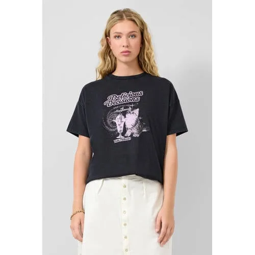 Dit zwarte dames T-shirt van QS is een basic met een casual uitstraling, geschikt voor elke dag. De jersey stof van 100 procent katoen voelt zacht aan op de huid en heeft een lichte elasticiteit, waardoor het T-shirt ontspannen valt. Door de garment dye wassing heeft het een iets gewassen look, wat de print op de voorkant extra laat opvallen. De ronde hals en de korte mouwen met oversized schouders zorgen voor een moderne, relaxte pasvorm.Dagelijkse basic met ontspannen pasvorm Gemaakt van 100 procent katoen voor een zachte en ademende touch Loose fit met rechtvallend model voor een relaxte, nonchalante look Oversized schouders en korte mouwen voor een modern silhouet Print op de voorkant als detail op de effen zwarte kleur Jersey stof met lichte stretch voor extra bewegingsvrijheid Garment dye wassing voor een subtiel gewassen effectGemakkelijk te dragen, seizoen na seizoenDit T-shirt combineert goed met je dagelijkse outfits in het voorjaar en de zomer. Draag het los op een jeans of korte broek, of stop het deels in de tailleband voor een iets meer gestylde uitstraling. De zwarte kleur laat zich eenvoudig combineren met verschillende onderstukken en schoenen.QS: eigentijdse stijl voor elke dagQS richt zich op moderne, draagbare mode die goed aansluit op het dagelijks leven. Met aandacht voor pasvorm en actuele details biedt het merk items die je moeiteloos combineert met de rest van je garderobe. Dit T-shirt past daar precies bij en vormt een basis voor veel verschillende looks.Een toegankelijke basic die zorgt voor een rustige en eigentijdse garderobe.