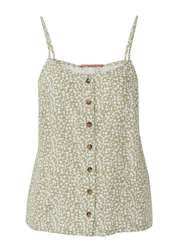 Blouse type: Klassieke blouse; Design: Gevoerde zoom/rand; Type sluiting: Knoopsluiting; Materiaal: Viscose; Halstype: Ronde hals; Motief: Bloemenprint; Kraag: Zonder kraag; Soort bandjes: Spaghettibandjes; Extra's: All-over patroon; Pasvorm: Normale pasvorm; Armlengte: Mouwloos; Lengte: Normale lengte