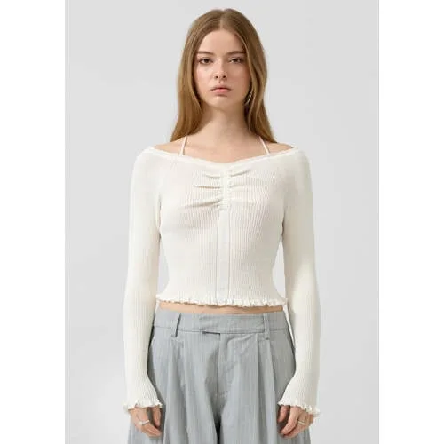 Voor een vrouwelijke, maar toch alledaagse look is deze gebreide off shoulder dames top een praktische basis in je garderobe. De top heeft een off-shoulder hals die subtiel je schouders laat zien en zo net wat meer stijl geeft aan een eenvoudige outfit. De aangesloten slim fit sluit mooi aan op het lichaam en past goed onder een blazer of vest, maar kan ook solo gedragen worden op een jeans of rok.Gebreide top met elegante halslijn Off-shoulder hals voor een elegante, open halslijn Lange mouwen, ideaal voor het lenteseizoen of frisse dagen Slim fit pasvorm die het silhouet volgt zonder te strak aan te voelen Gemaakt van 89% viscose / 11% polyamide voor een soepele, zachte touch Effen witte kleur die gemakkelijk te combineren is met andere items Gebreide stof die licht en comfortabel aanvoelt op de huidMakkelijk te stylen op drukke dagenDeze top uit de Daily collectie is gemaakt voor dagen waarop je weinig tijd hebt, maar wel verzorgd voor de dag wilt komen. Combineer met een high waist jeans en sneakers voor een casual look, of draag de top op een aansluitende rok met laarsjes voor een iets gekledere uitstraling.QS voor moderne dagelijkse kledingQS richt zich op kleding die goed past in het dagelijkse leven. De collecties bestaan uit moderne basics en trenditems die je makkelijk combineert en vaak kunt dragen. Zo voeg je met deze top een betrouwbare, stijlvolle basic toe aan je kast waar je het hele seizoen plezier van hebt.Een lichte knit die je snel uit de kast pakt voor elke dag.