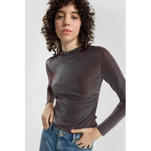 Design: Gevoerde zoom/rand; Materiaal: Jersey; Halstype: Opstaande kraag; Motief: Effen; Extra's: Glitterend; Pasvorm: Slanke pasvorm; Armlengte: Lange mouw; Lengte: Normale lengte