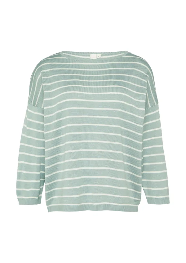 Design: Geribbelde kraag, Geribd ceintuurtje, Overcut schouder; Materiaal: Knitwear; Halstype: Boothals; Motief: Gestreept; Extra’s: All-over patroon, Fijne stof; Pasvorm: Losse pasvorm; Armlengte: Driekwart mouw; Lengte: Normale lengte