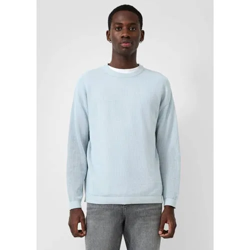 Voor een ontspannen, dagelijkse look is deze lichtblauwe gebreide trui voor heren een praktische basic in je kledingkast. De trui is gemaakt van 100% katoen en voelt soepel en zacht aan op de huid. De ronde hals en de relaxed fit geven een nonchalante uitstraling, terwijl het ingebreide patroon net wat extra karakter toevoegt. Ideaal voor werk, thuis of een casual afspraak.Comfortabele knit met doordachte details Gemaakt van 100% katoen, prettig om direct op de huid te dragen Relaxed fit voor een comfortabele, iets ruimere pasvorm Ronde hals met geribde rand die mooi in model blijft Geribde boorden aan mouwen en zoom voor een nette afwerking Lichtblauwe effen kleur, makkelijk te combineren met jeans of chino Ingebreid patroon zorgt voor een subtiele, moderne structuur Lange mouwen, geschikt voor koelere dagen en lagenZo draag je deze lichtblauwe truiDeze trui past goed in een casual outfit met een donkere jeans en sneakers. Voor een iets nettere look combineer je hem met een chino en lage veterschoenen. Door de relaxed fit kun je er eenvoudig een T-shirt onder dragen voor extra warmte.QS: casual stijl voor elke dagQS staat bekend om modern vormgegeven basics en casual items die je makkelijk combineert. De focus ligt op draagbare kleding met een actuele uitstraling, geschikt voor alledag. Met deze trui haal je een betrouwbaar item in huis dat seizoen na seizoen een plaats in je kledingkast verdient.Een veelzijdige keuze als je houdt van comfortabele, eenvoudige knitwear met een frisse kleur.