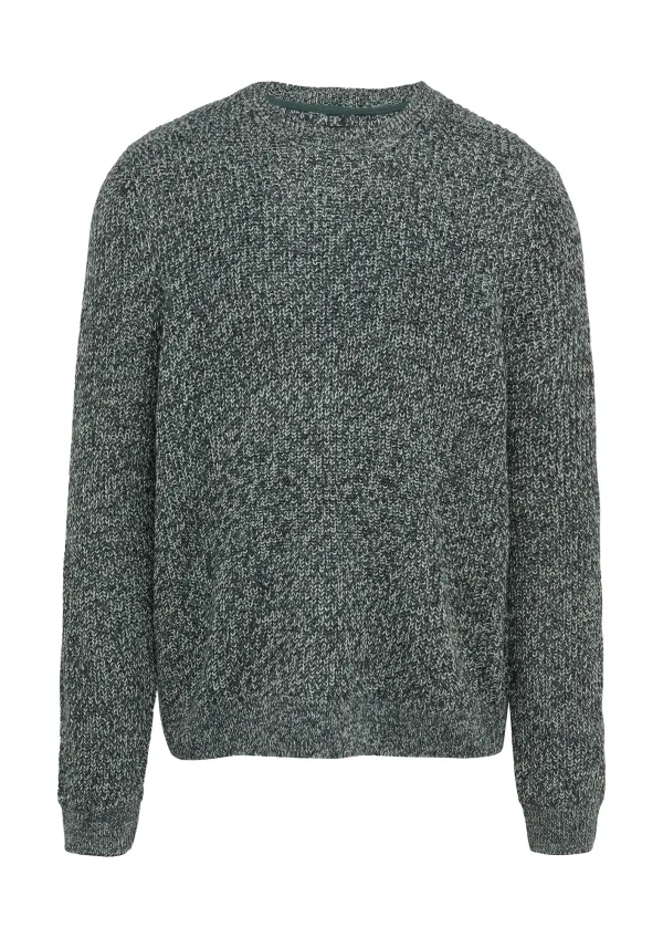 Design: Geribbelde kraag, Geribd ceintuurtje, Nektape; Materiaal: Knitwear; Halstype: Ronde hals; Motief: Mélange; Extra's: Met textuur; Pasvorm: Normale pasvorm; Armlengte: Lange mouw