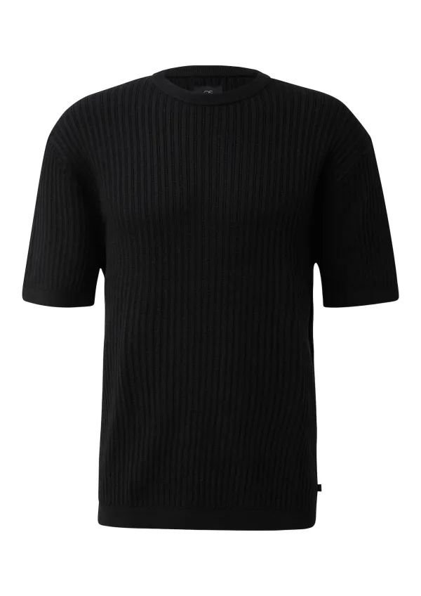 Design: Geribbelde kraag, Rechte zoom; Materiaal: Knitwear; Halstype: Ronde hals; Motief: Effen; Extra's: Met textuur; Pasvorm: Losse pasvorm; Armlengte: Halve mouw; Lengte: Normale lengte