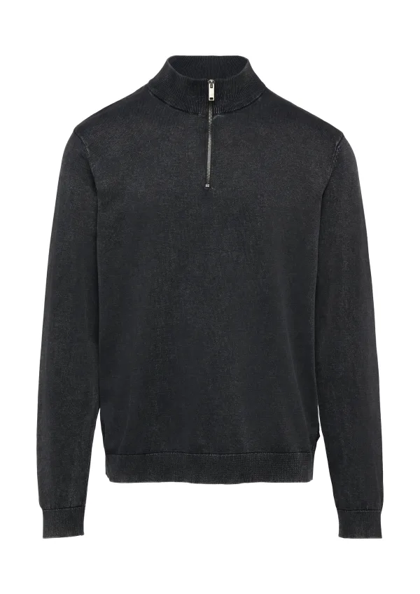 Design: Halve rits; Type sluiting: Ritssluiting; Materiaal: Knitwear; Halstype: Schipperskraag; Motief: Mélange; Extra’s: Gewassen effect; Pasvorm: Normale pasvorm; Armlengte: Lange mouw