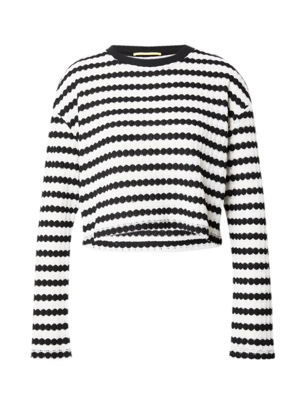 Design: Geribbelde kraag, Rechte zoom; Materiaal: Knitwear; Halstype: Ronde hals; Motief: Gestreept; Extra’s: All-over patroon, Voelt zacht aan; Pasvorm: Wijde pasvorm; Armlengte: Lange mouw; Lengte: Korte pasvorm